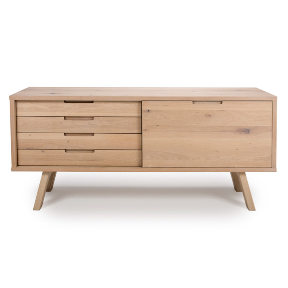 The Bergen Sideboard, measuring W1600 x D450 x H730mm, is a masterpiece of minimalist elegance and practical functionality. Crafted from premium light oak, this sideboard features a clean and modern design that seamlessly complements a variety of interior styles, from contemporary to Scandinavian-inspired.
