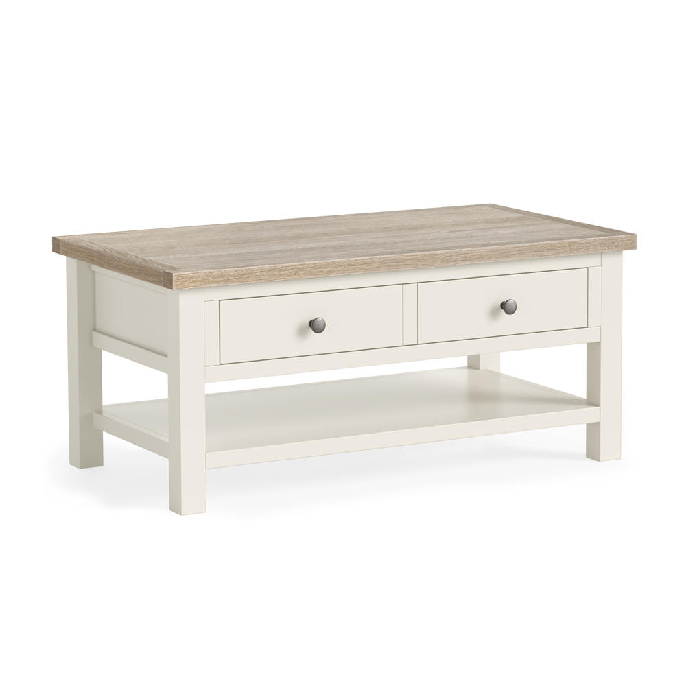 Modern Country Coconut White Coffee Table with Drawer