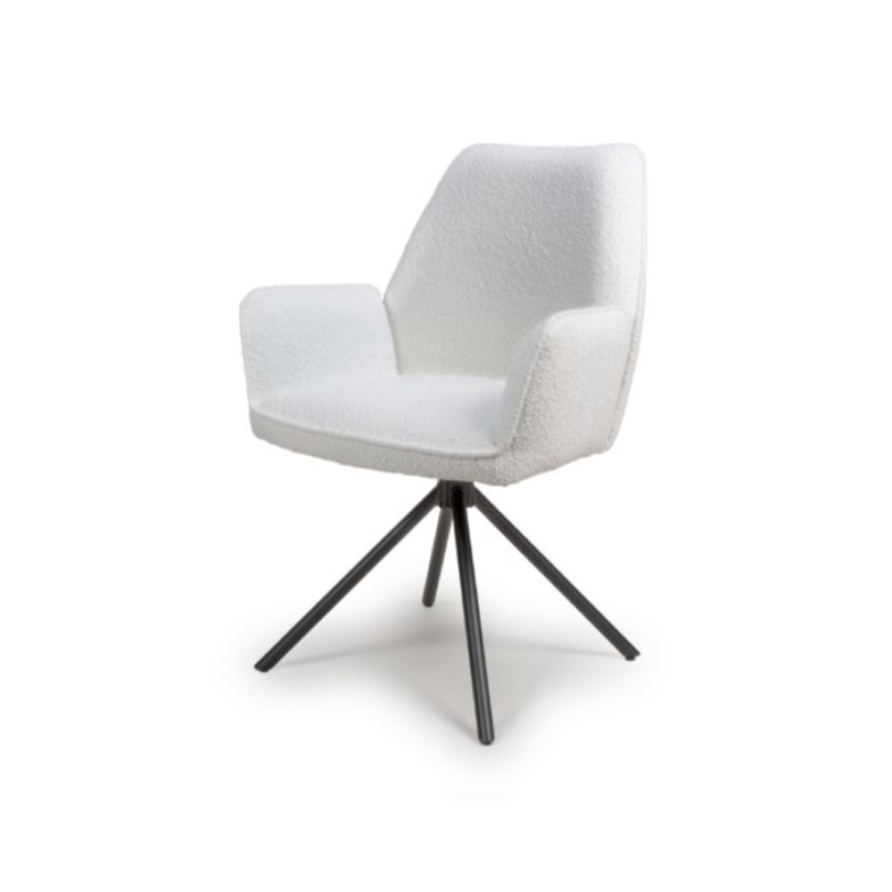 Upholstered in sumptuously soft bouclé fabric, the Uno Chair introduces a rich, textured finish, adding warmth and depth to any dining setting. Available in four on-trend shades – Ivory, Rust, Grey, and Light Blue, this chair brings a refined yet cosy aesthetic, complementing both modern and classic interiors with ease.